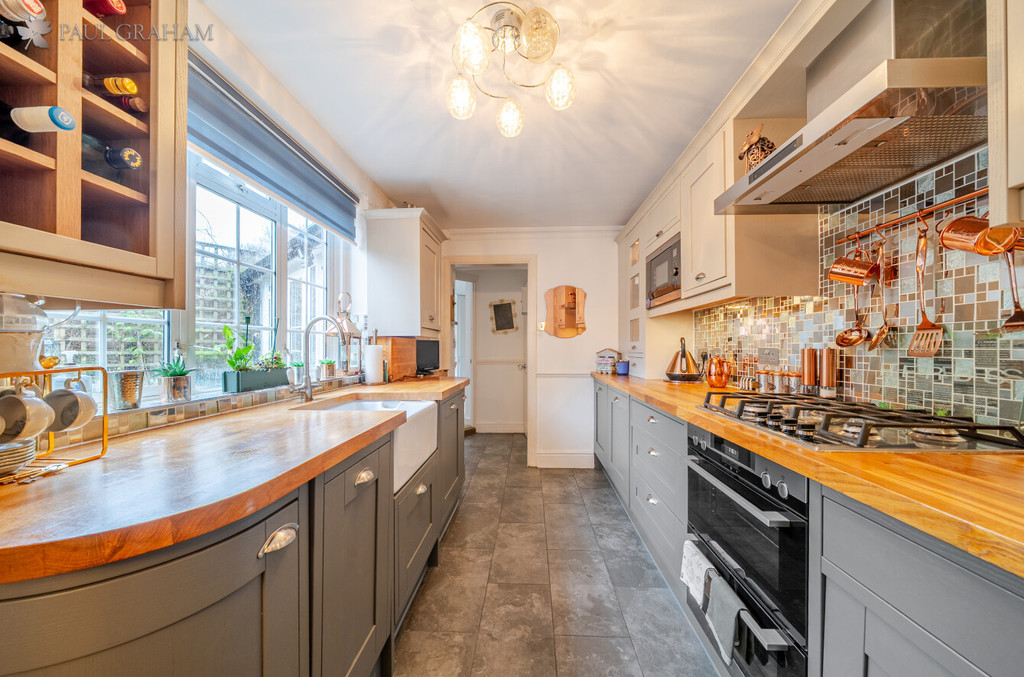 Guide Price £600,000 - £625,000. Offered to the market with no onward chain, this charming period cottage is tucked away from passing traffic, offering a wonderful sense of privacy while retaining strong kerb appeal. Internally, the property has been thoughtfully refurbished to create a warm and welcoming home that blends character features with contemporary finishes. Two generous reception rooms provide flexible living and entertaining space, complemented by a well-appointed shaker-style kitchen with oak work surfaces and ample storage.
