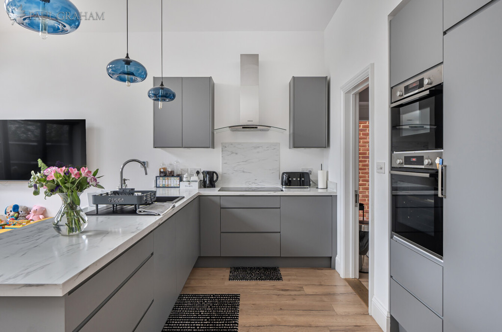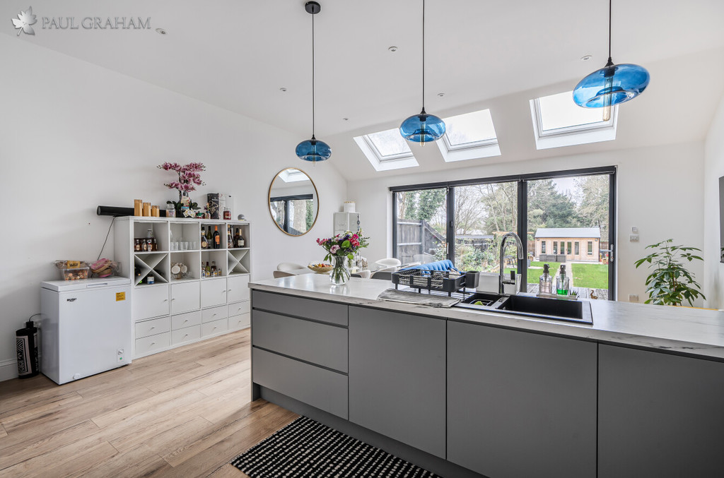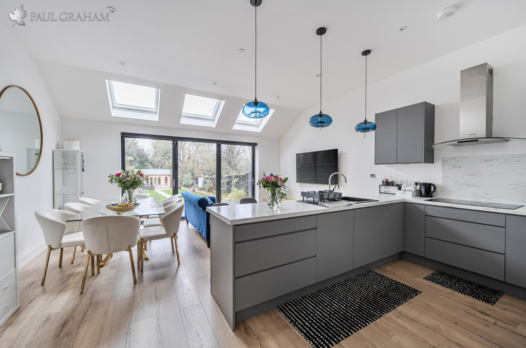 The ground floor offers bright and well-balanced accommodation, centred around a stylish open plan kitchen and dining space with fully integrated appliances, ideal for both everyday living and entertaining. Additional features include a separate utility area and a guest cloakroom, while the overall layout provides a seamless blend of practicality and modern design.