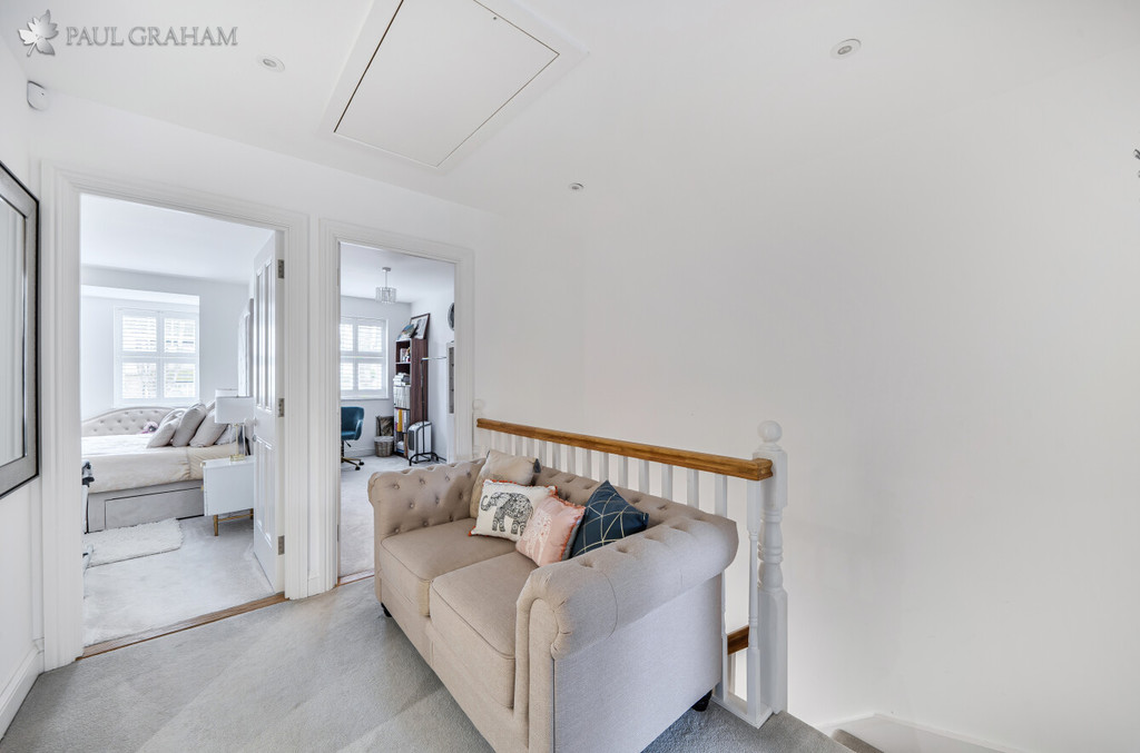To the first floor are four well-proportioned bedrooms, including a principal bedroom with en-suite shower room, along with a sleek family bathroom finished to a high standard. All rooms are tastefully decorated, creating a calm and cohesive feel throughout the home.