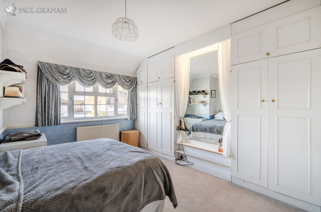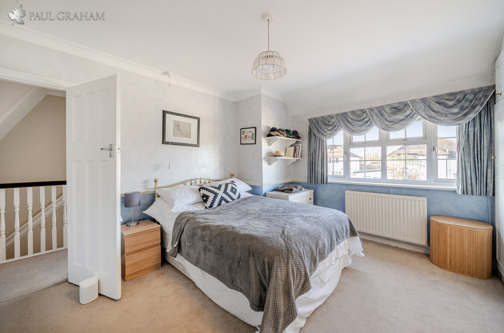 This spacious three-bedroom house with an additional loft room offers generous, versatile accommodation in a highly desirable location. Originally built as one of the show homes for the well-regarded Poets Estate development, the property retains a sense of character and quality throughout. The layout includes two bright reception rooms and an extended, well-kept integrated kitchen, creating an ideal setting for both everyday living and entertaining. The westerly aspect garden provides a pleasant outdoor space to enjoy afternoon and evening sun. Offered to the market with no onward chain, this home presents an exciting opportunity for buyers seeking space, convenience, and potential.