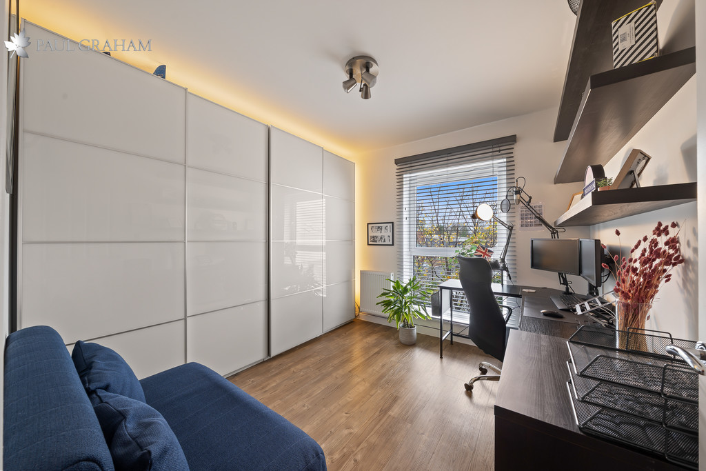 Both bedrooms are well-proportioned, one benefiting from fitted wardrobes. A stylish bathroom, finished to a high specification, completes the internal layout.