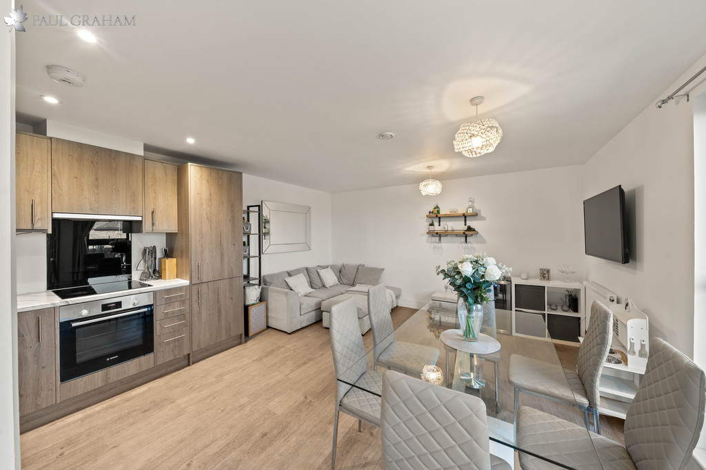 Paul Graham are pleased to market this well presented 3rd floor purpose built apartment built in 2020. Situated on a residential road opposite Mill Green, close to Mitcham Junction mainline station and tram stop. Features include a modern open plan Kitchen to the 17 ft reception room and balcony, a 14 ft bedroom and a bathroom. Economic energy bills with Kurve heating system, Free on road parking and permits available, secure bike storage. Viewing is recommended.
