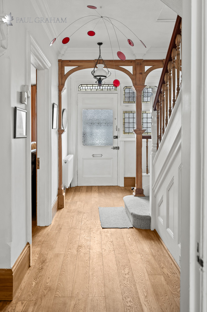 This attractive detached character house offers a wealth of original features, including beautiful stained glass windows and charming period details throughout.