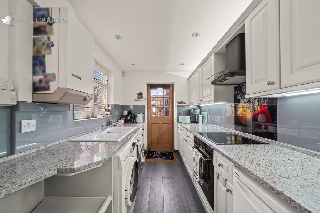 To the rear of the property is a superb extended kitchen, thoughtfully designed with a range of modern wall and base units, ample work surfaces and space for appliances. On the first floor there are two well-proportioned double bedrooms and a stunning luxury four-piece bathroom suite which has been finished to a high standard. The bathroom includes a free standing bath, separate walk-in shower enclosure, wash hand basin and low level WC, creating a stylish and relaxing space.