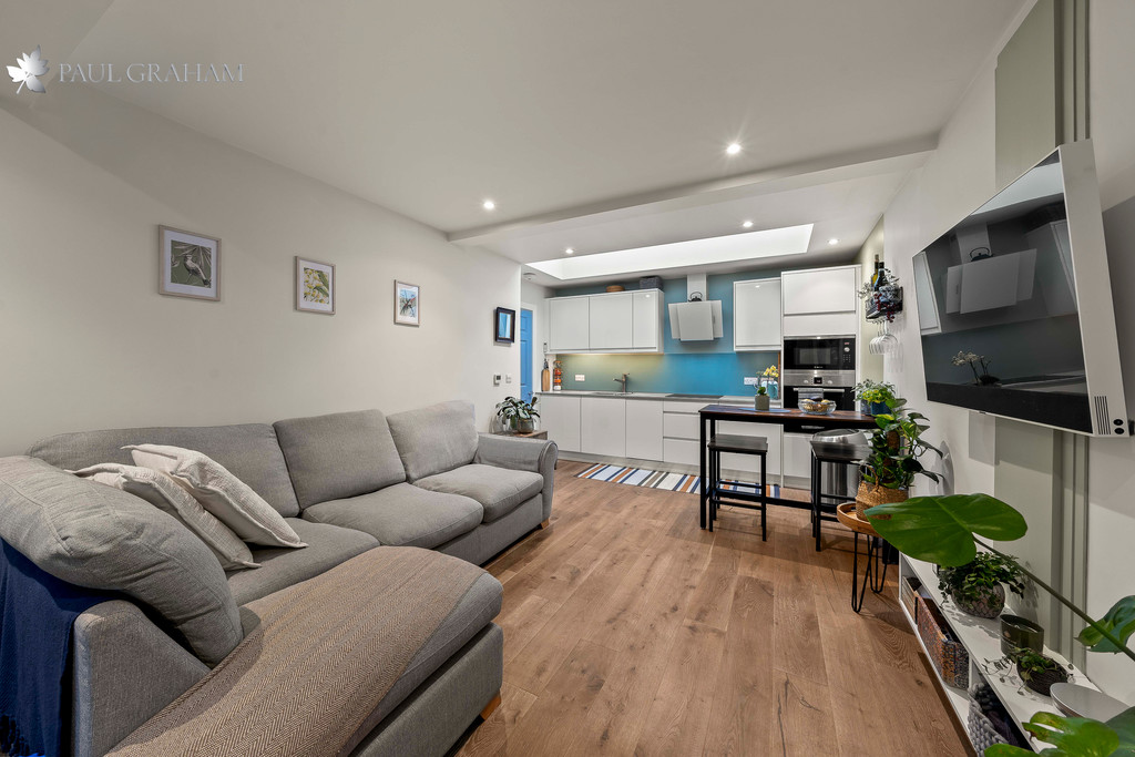 The accommodation comprises a bright and spacious open-plan living area, finished to a high standard, with a contemporary fitted kitchen. The double bedroom is generously sized, while the modern shower room is sleek and well appointed.
