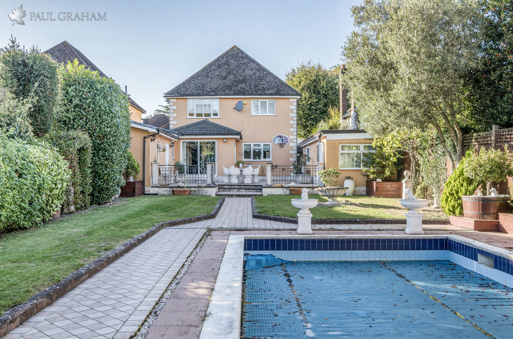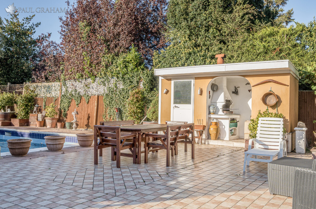 A charming and substantial four/five bedroom Italian-inspired detached house, this home is beautifully presented with luxury finishes throughout. Set on a generous plot, the property offers a versatile layout with a choice of reception rooms, a modern kitchen/breakfast room, and three bathrooms. A self-contained annexe adds excellent flexibility for multi-generational living or guest accommodation. Outside, the home enjoys landscaped grounds with a gated driveway, a swimming pool, and a large workshop/outbuilding complete with wine cellar, larder and stores all adding to its unique character.