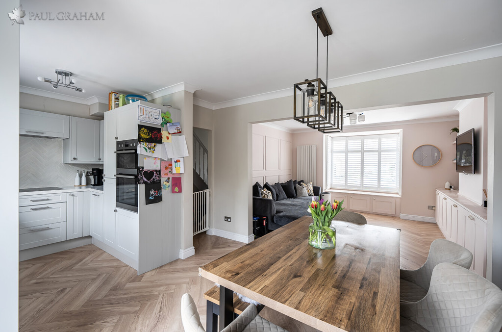 This charming and spacious three-bedroom family home is presented in excellent condition throughout, having been thoughtfully refurbished last year to include a newly fitted kitchen, new flooring and upgraded floor insulation. The property offers bright and well-balanced accommodation, with a welcoming front sitting room and a stunning open-plan kitchen/dining room to the rear, creating an ideal space for modern family living and entertaining.