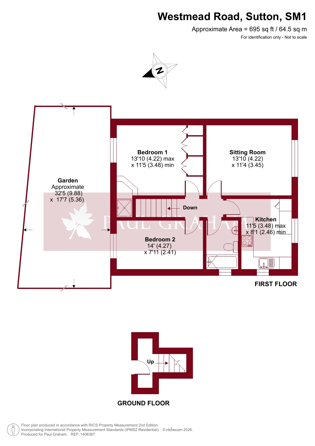 Guide Price £325,000 - £335,000. A superb two double bedroom first floor maisonette offering 695 sq ft (64.5 sq m) of well-proportioned accommodation, presented to the market in excellent condition throughout. The property benefits from its own private front door, a private loft space, and a 900+ year lease (approx. 936 years) with no service charges, making it an ideal long-term purchase.